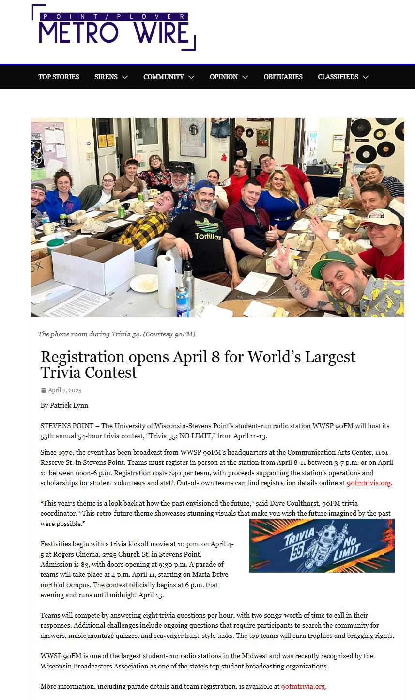 Point/Plover Metrowire - March 11, 2025 - "90FM primed for World’s Largest Trivia Contest"