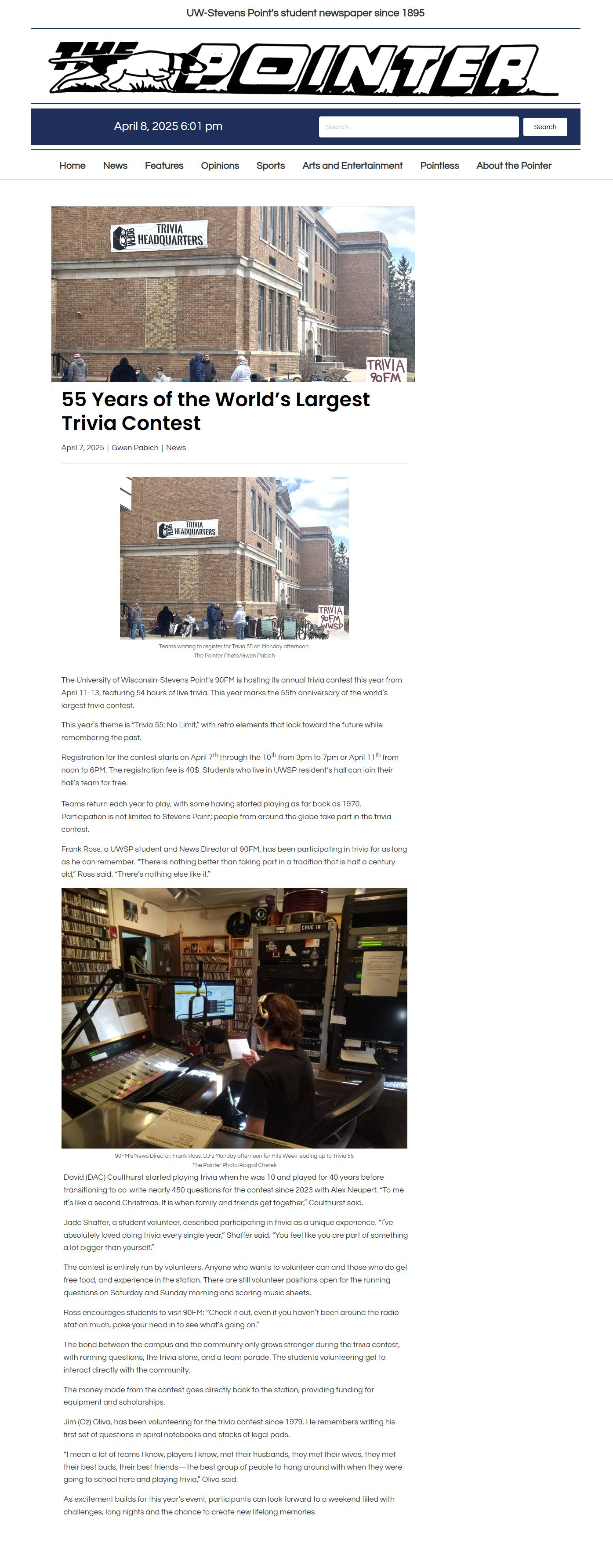 The Pointer - April 8, 2025 - "55 Years of the World Largest Trivia Contest"